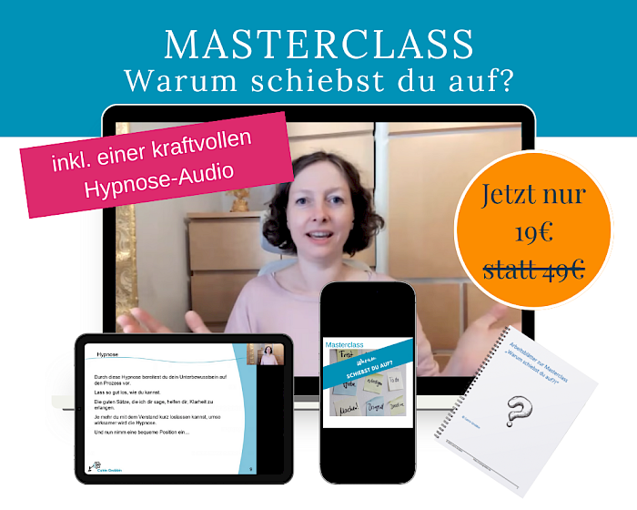 In dieser 70minütigen Masterclass lernst du zu verstehen, was hinter deinem Aufschiebeverhalten steckt und wie du ins Tun kommen kannst, ohne dich zu überfordern.